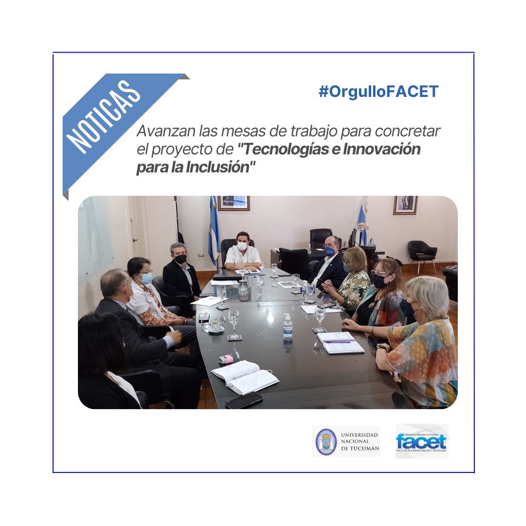 Las autoridades de la FACET, se reunieron con el Ministro de Salud de la provincia, Dr. Luis Medina Ruiz, para trabajar de manera colaborativa y poner en marcha las acciones necesarias en pos de concretar el Proyecto "Tecnologías e Innovación para la Inclusión", desarrollado por la Universidad Nacional de Tucumán y subvencionado por la Unión Europea.