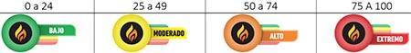 El rango del índice, que varía de 0 a 100, está dividido en cuatro clases, que indican el grado de peligro de propagación si ocurriera un fuego.